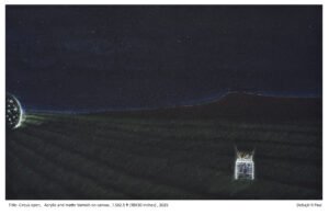 His journey from Tripura to West Bengal and Baroda has immersed him in diverse landscapes, each leaving an indelible mark on his art. The free night life of Baroda inspires him to do this series initially. Rather than focusing on specific locations, he draws inspiration from fragments of various environments, weaving them into his paintings. This process fuels his longing for a space that embodies his desires, driving his creative pursuit.